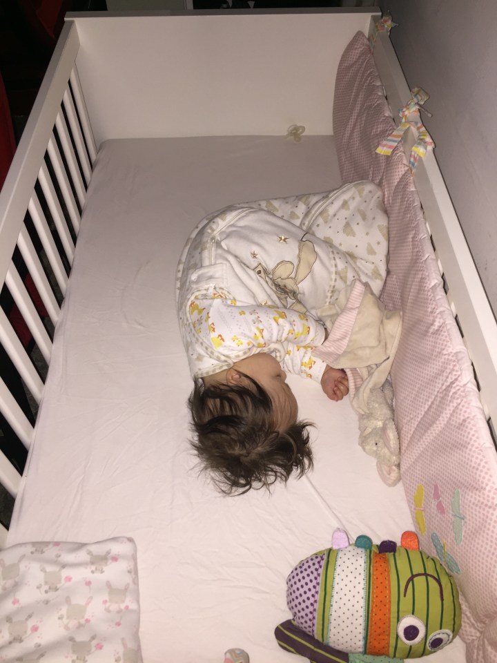 So hard. I never imagined it takes so long and so much effort for a baby to fall asleep. Just looking at her I get tired and feel my red closing slowly slowly. First she shows how annoyed she is to be in her bed, followed by moaning about me not holding her hand or touching her (I figured this out in time), rolling from one side to the other, moaning a bit more cause I don’t have about five hands to hold her, going sideways in bed (her favourite sleep position as well – no idea how she can do it) and so on while I whisper a made up song she got used to hearing before bed.