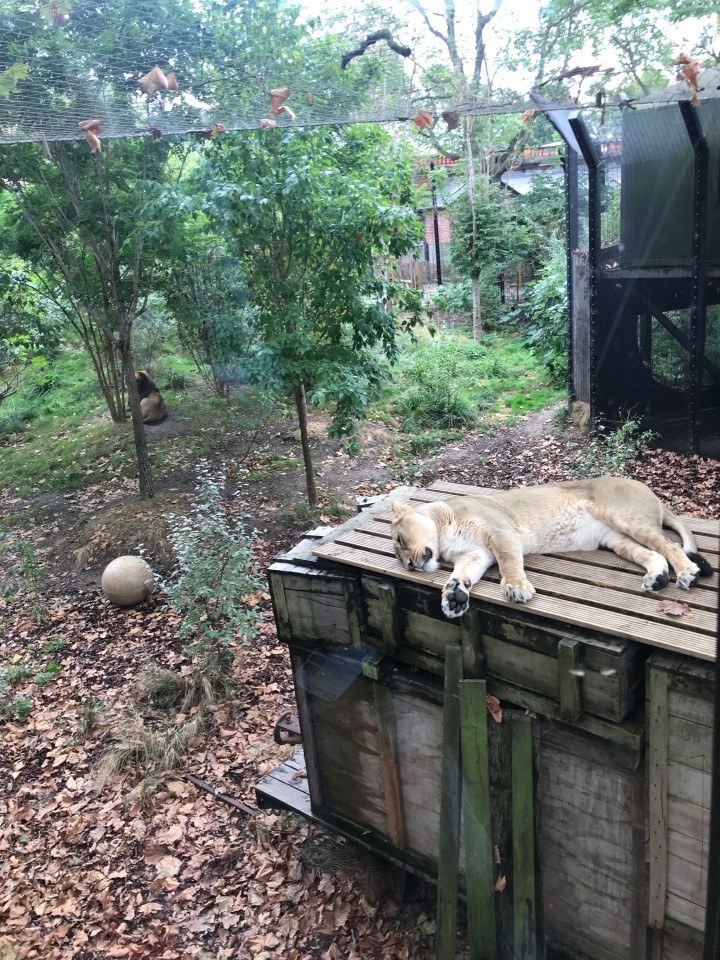 The closest one was sleeping peacefully. Ruby decided on tapping the glass window and shouting: “WAKE UP LION! WAKE UP!”