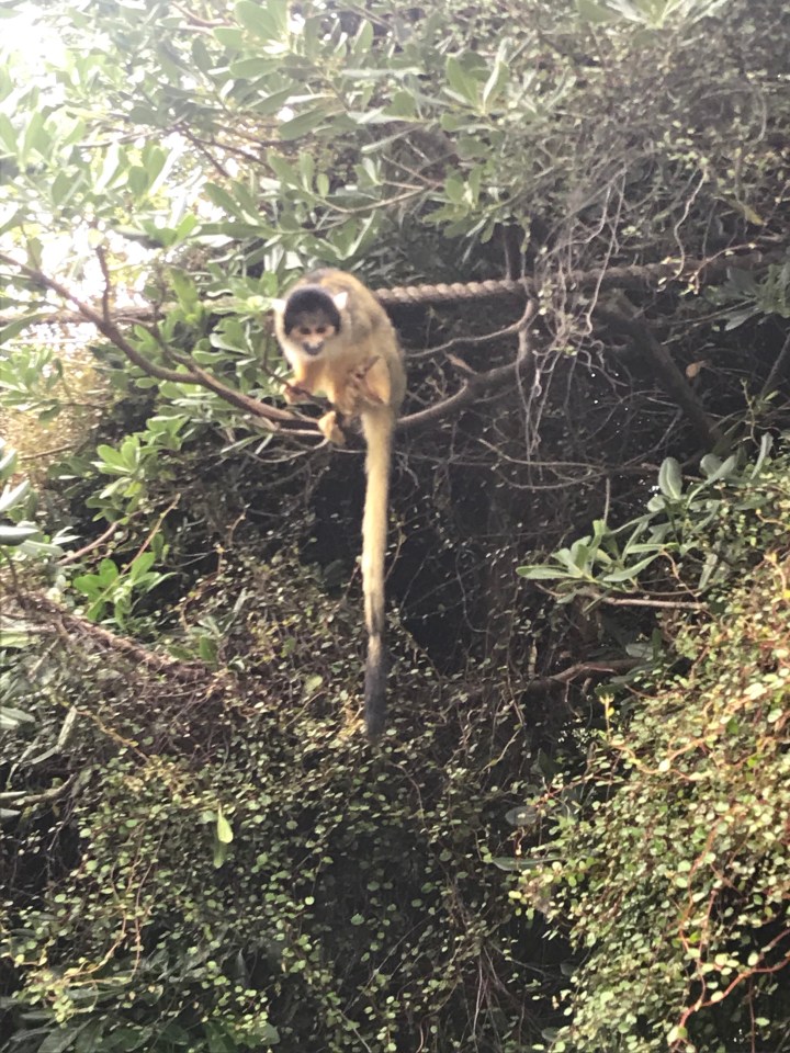 The lion didn’t wake up but going further we got to the gorillas who were captivating and magnificent (I was mesmerised and didn’t take pictures) and got to the little thief monkeys who offered us a funny and entertaining show