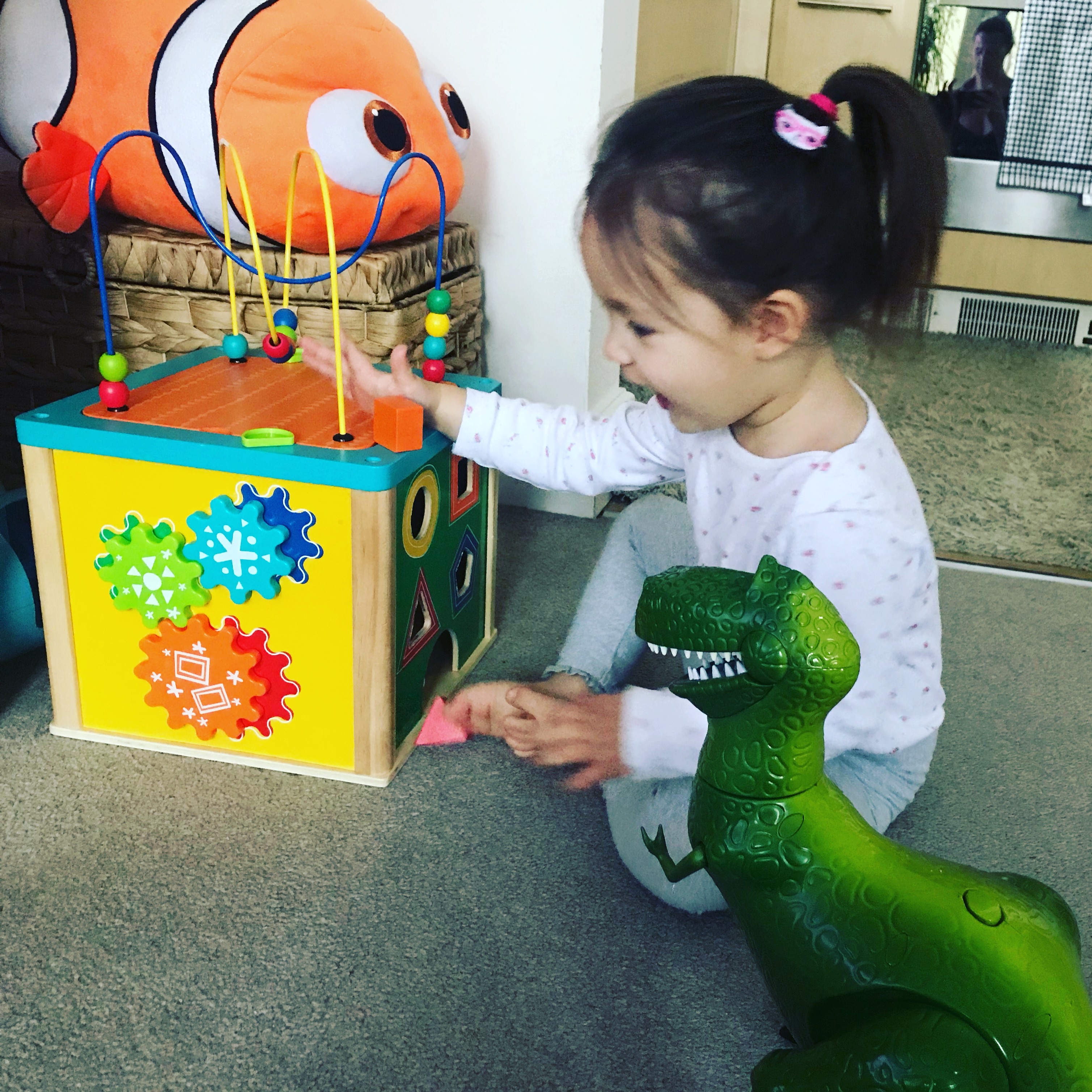She is a proper book nerd and she can “read” you The Gruffalo and We’re going on a Bear Hunt any time of the day. She loves to colour and sing and play with stickers but she also enjoys some screen time so mummy can write her blog or just breath for few minutes. How do you think she learned about Toy Story and Nemo, and Moana and Pokemon? We always have the TV on on the background and she watches it only when she considers it’s something interesting for her. Otherwise she’ll happily play with her toys.