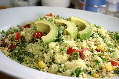 As a plus, couscous is easy to make and you can add as many veggies, cheese and chicken as you would like. For myself I make it with feta cheese, green olives, avocado and grilled chicken.