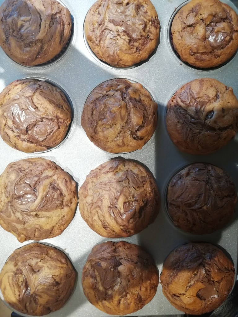 My last discovery are these delicious banana muffins, swirled with Nutella chocolate. They are ideal for a yummy adult breakfast along a cup of coffee or tea and they can be the best little treat for toddlers. I managed to get them just right from the first try and they were a hit in our house. Now I have to make them for work on Tuesday as the girls noticed my Instagram stories and went cray cray over it.